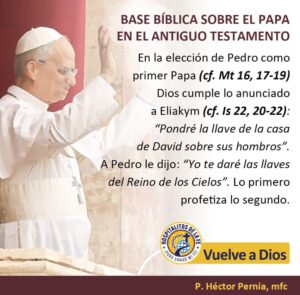 En Mt 16, 17-19 Dios cumple lo que anuncia y prefigura en Is 22, 20-22: a Eliakim: “Pondré la llave de la casa de David