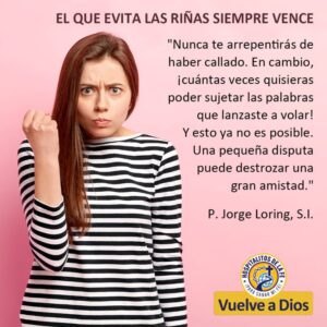 Reflexión Sobre Las Riñas Continuando la enseñanza anterior, el padre Jorge Loring expone varias razones por las cuales siempre se deben evitar las riñas: «Las