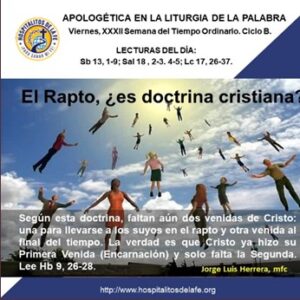 Apologética en la Liturgia de la Palabra Martes, XXXIII Semana del T. Ordinario Lecturas del día: Ap 3, 1–6. 14–22; Sal 14, 2–5; Lc 19,
