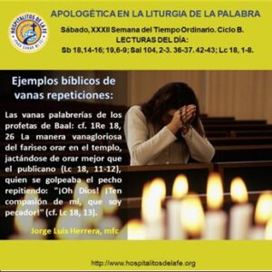 Apologética en la Liturgia de la Palabra Martes, XXXII Semana del Tiempo Ordinario Lecturas del día: Sab 2, 23-3, 9. Sal 33, 2-3. 16-17. 18-19. Lc