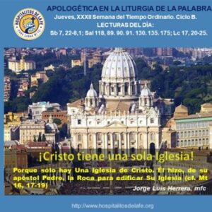 Apologética en la Liturgia de la Palabra Jueves, XXXII Semana del Tiempo Ordinario. Ciclo B. Lecturas del día: Sb 7, 22-8,1; Sal 118, 89. 90.