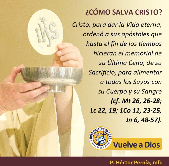 Para nuestra salvación, Cristo ordenó a sus apóstoles y a sus sucesores que hasta el fin de los tiempos hicieran el memorial de su Última Cena, de su sacrificio en la cruz, y de ese modo alimentaran a sus discípulos con su Cuerpo y su Sangre para darles así la vida eterna (cf. Mt 26, 26-28; Lc 22, 19; 1Co 11, 23-25, Jn 6, 48-57).