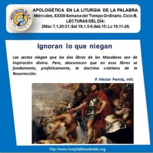 Durante los días de esta semana nos ha venido acompañando en la Liturgia de la Palabra los dos Libros de los Macabeos. Estos libros fueron quitados del canon bíblico por la mayoría de los grupos protestantes. Hoy abordaremos el tema: ¿leen y revisan antes de decidir algo tan grave?