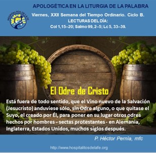 Lecturas del día: Col 1,15–20; Salmo 99, 2–5; Lc 5, 33–39.
