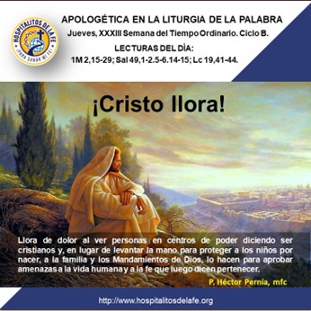 Lecturas del día: 1M 2, 15-29; Sal 49, 1-2. 5-6. 14-15; Lc 19, 41-44.