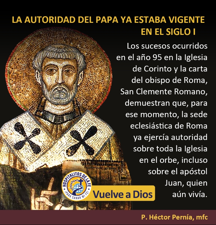 En el siglo I, la comunidad de Corinto acudió a Roma para que el Papa Clemente (cuarto sucesor de Pedro) interviniera en un conflicto interno. A través de una carta enviada mediante representantes autorizados, el problema se solucionó. Llama poderosamente la atención que, en lugar de solicitar la intervención del Apóstol Juan —quien se encontraba vivo y mucho más cerca, en Éfeso—, acudieron al Obispo de Roma.