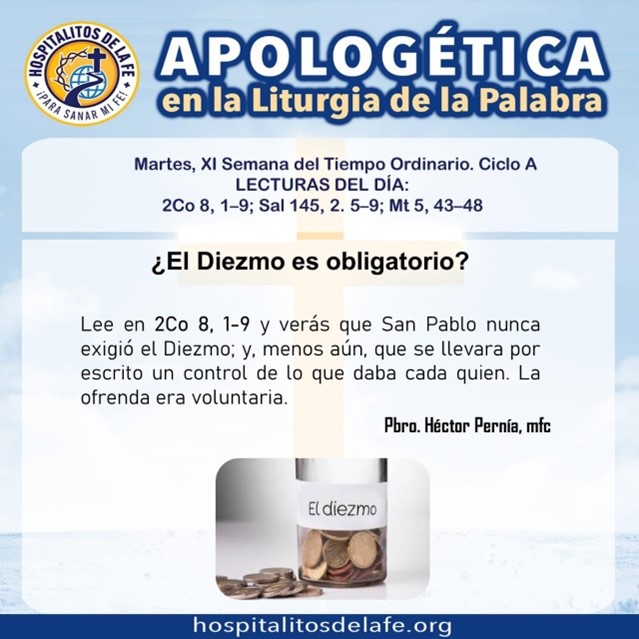 Con la primera lectura de hoy (2Co 8, 1-9) tenemos una providente oportunidad de conocer cómo se sostenía la Iglesia Primitiva, y darse cuenta que a la gente ya no se le solicitaban el diezmo, ni un porcentaje determinado de ofrenda, tampoco se les manipulaba o condicionaba mediante pactos de retribución según lo que cada quien daba.