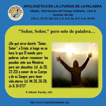 Lecturas del día: 1Tm 1, 15-17; Sal 112, 1-2. 3-4. 5a. 6-7; Lc 6, 43-49.
