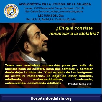 La advertencia hacia la IDOLATRÍA también la vemos en el evangelio de hoy. Ocurre cuando nos creemos dioses, con derecho a juzgar y despreciar. Nos negamos a escuchar a Jesús «Los publicanos y pecadores se acercaban a Jesús para escucharle» (Lc 15, 1), pero nuestra actitud autosuficiente nos lleva a olvidar que nosotros también rendiremos cuentas al final de nuestras vidas. La crítica de los fariseos es ésa, «¡Jesús anda con los pecadores!». Crítica recelosa cargada de rencor. Así vamos por el mundo, cargados de odio por las ofensas y heridas que otros causan en nosotros; incluso, es muy común oírla en nuestros hermanos no católicos cuando se refieren a nuestros Sacerdotes.