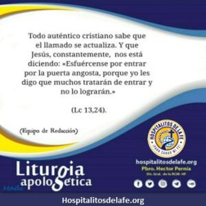 Sin embargo, todo auténtico cristiano sabe que el llamado se actualiza. Y que Jesús, constantemente, nos está diciendo: «Esfuércense por entrar por la puerta angosta, porque yo les digo que muchos tratarán de entrar y no lo lograrán” (Lc 13, 24). Y si Él lo señala quiere decir que sí podemos. Que el Reino de Dios está a nuestro alcance; que no debemos perder la esperanza; que debemos redoblar esfuerzos para alcanzar la Vida Eterna, porque todo esto pasará y cuando venga el día del Juicio Final que no nos diga: “No sé quiénes son. Aléjense de mí, malvados” (Lc 13, 27). Asumamos con verdadera convicción que nuestro Padre celestial es un Dios de vivos y no de muertos, porque la muerte vendrá pero continuaremos viviendo en, por y para Cristo.