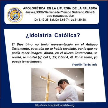 Sobresale en esta lectura el pecado de idolatría del pueblo de Israel. Por medio de un decreto el rey decidía a cuál de sus dioses paganos todo su reino tenía que adorar, y la elección se basaba en un mero capricho suyo; siendo muy frecuente que él mismo se proclamaba dios, prohibía a los israelitas adorar al Dios de sus padres, y obligaba a todos a adorar los dioses que él estableciera.