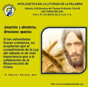 Jesucristo chocaba con las autoridades religiosas de su época porque lo acusaban de violar una y otra vez el sábado; y existe hoy una organización – los adventistas – que perpetúa la conducta de los judíos de querer persuadir a los cristianos de abandonar la celebración de la Resurrección de Cristo, cada Domingo, como día del Señor para someterlos a cumplir ordenanzas muy semejantes a las de los judíos, en las que desvirtuan el sentido espiritual del descanso sabático para imponer leyes hechas por hombres con las que justifican a menudo la violación del mandato de la caridad.