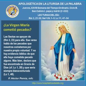 Hay un fragmento de la primera lectura que algunas sectas protestantes utilizan para tildar de pecadora e inmunda a la madre de Jesucristo: