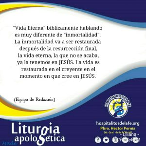 «Vida Eterna» bíblicamente hablando es muy diferente de «inmortalidad». La inmortalidad va a ser restaurada después de la resurrección final, la vida eterna, la que no se acaba, ya la tenemos en JESÚS. La vida es restaurada en el creyente en el momento en que cree en JESÚS. (1Jn 5, 11) la inmortalidad será restaurada después del segundo advenimiento de CRISTO, como lo dice Pablo en 1Cor 15, 53: «porque es necesario que esto corruptible se vista de incorrupción y esto mortal se vista de inmortalidad».
