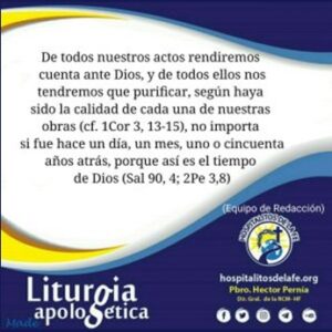 De todo ello rendiremos cuenta, y de todos ellos nos tendremos que purificar, según haya sido la calidad de cada una de nuestras obras (cf. 1Cor 3, 13-15), no importa si fue hace un día, un mes, uno o cincuenta años atrás, porque así es el tiempo de Dios: