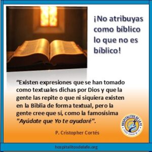 Sin embargo, existen otras expresiones que se han tomado como textuales y que la gente las repite o que ni siquiera existen en la Biblia de forma textual, pero la gente cree que sí, como la famosísima «Ayúdate que Yo te ayudaré».