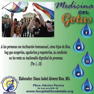 las personas con inclinación homosexual, cómo hijos de Dios, hay que acogerlas, ayudarlas y respetarlas, su condición no les resta su inalienable dignidad de personas. (Tm 1, 10)