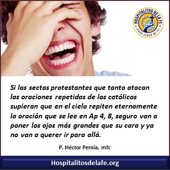 “Jumm, si las sectas protestantes que tanto atacan las oraciones repetidas de los católicos supieran que en el cielo repiten eternamente la oración que se lee en Ap 4, 8, seguro van a poner los ojos más grandes que su cara y ya no van a querer ir para el cielo.”