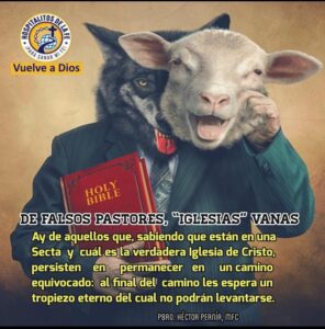 Ay de aquellos que, sabiendo que están en una Secta y cuál es la verdadera Iglesia de Cristo, persisten en permanecer en un camino equivocado: al final del camino les espera un tropiezo eterno del cual no podrán levantarse. De ellos dijo el Señor: «Muchos me dirán aquel Día: «Señor, Señor, ¿no profetizamos en tu nombre, y en tu nombre expulsamos demonios, y en tu nombre hicimos muchos milagros?» Y entonces les declararé: «¡Jamás os conocí; apartaos de mí, agentes de iniquidad!» (cf. Mt 7, 22-23).