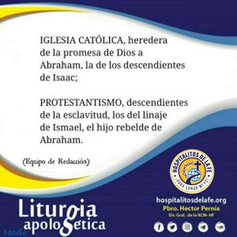 La lectura de Gálatas (3, 7-14) lleva a descubrir lo que el título de esta publicación anuncia. ¿Y por qué? Porque mientras la Iglesia Católica parte de Cristo y toma el camino de la Gracia y de la Fe, y persevera en él aunque pasen los siglos, el protestantismo se aparta de Cristo y de la Gracia, como dice Pablo en Gál 5, 3-4, para devolverse a la esclavitud de las obras de la Ley de Moisés. Esto lo hacen cuando se someten a hacer cumplir leyes como la del Diezmo obligatorio, la del Sábado, o la de prohibir comer ciertos alimentos; leyes todas que Cristo abolió en la cruz (Ef 2,15).