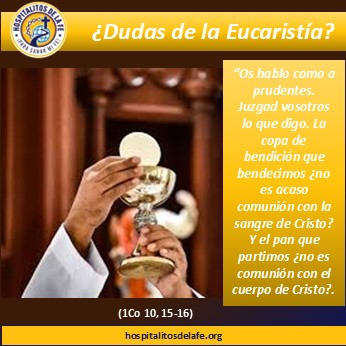 “Os hablo como a prudentes. Juzgad vosotros lo que digo. La copa de bendición que bendecimos ¿no es acaso comunión con la sangre de Cristo? Y el pan que partimos ¿no es comunión con el cuerpo de Cristo?. Porque aun siendo muchos, un solo pan y un solo cuerpo somos, pues todos participamos de un solo pan” (1Cor 10, 15-17).