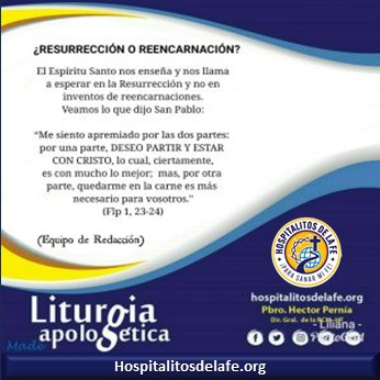 La primera lectura de hoy, tomada de Flp 1, 18b-26, nos trae, a través del testimonio del apóstol Pablo, una preciosa revelación con la que el Espíritu Santo nos enseña y nos llama a esperar en la Resurrección y no en inventos de reencarnaciones. Veamos lo que dijo San Pablo: