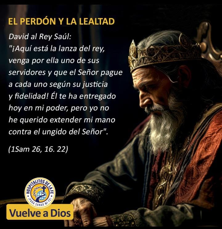 David levantó la lanza de lejos y gritó a Saúl: «¡Aquí está la lanza del rey, venga por ella uno de sus servidores y que el Señor pague a cada uno según su justicia y fidelidad! Él te ha entregado hoy en mi poder, pero yo no he querido extender mi mano contra el ungido del Señor». (1Sam 26, 16. 22).
