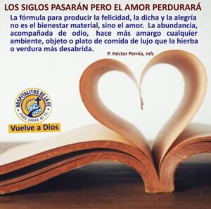 Los siglos pasarán y siempre el resultado será el siguiente: la fórmula para producir la felicidad, la dicha y la alegría no es el bienestar material sino el amor. La abundancia acompañada de odio hace tan amargo cualquier ambiente, objeto o plato de comida de lujo, que la hierba o verdura más desabrida.