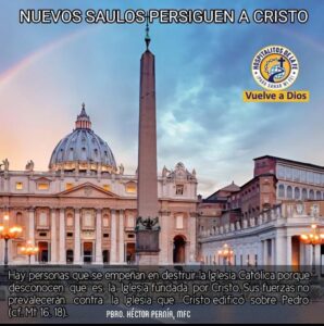 Hay personas que se empeñan  en destruir la Iglesia Católica, porque desconocen que es la Iglesia fundada por Cristo. Creen que la fundó un hombre, el emperador Constantino y se  sienten en el deber y la misión de fundar la “verdadera iglesia de Jesucristo”. Por eso son como Saulo, porque hacen el mal creyendo que hacen un gran bien. No son obreros del bien sino del mal, que en vano gastan sus energías intentando desaparecer de la Iglesia Católica. Escuchen a Gamaliel: “ustedes no podrán destruirlos, y ojalá no estén luchando contra Dios” (Hch 5,39). Sus fuerzas no prevalecerán contra la Iglesia que Cristo edificó sobre Pedro (cf. Mt 16,18).