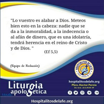 “Lo vuestro es alabar a Dios. Meteos bien esto en la cabeza: nadie que se da a la inmoralidad, a la indecencia o al afán de dinero, que es una idolatría, tendrá herencia en el reino de Cristo y de Dios”. (Ef 5,5)