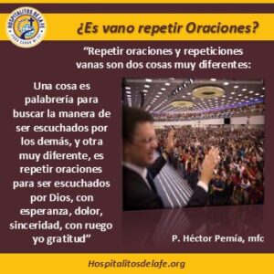 Repetir oraciones y repeticiones vanas son dos cosas muy diferentes. Una cosa es palabrería para buscar la manera de ser escuchados, y otra muy diferente es repetir oraciones con dolor, con esperanza, con amor, con ruego, con sinceridad, o con gratitud.